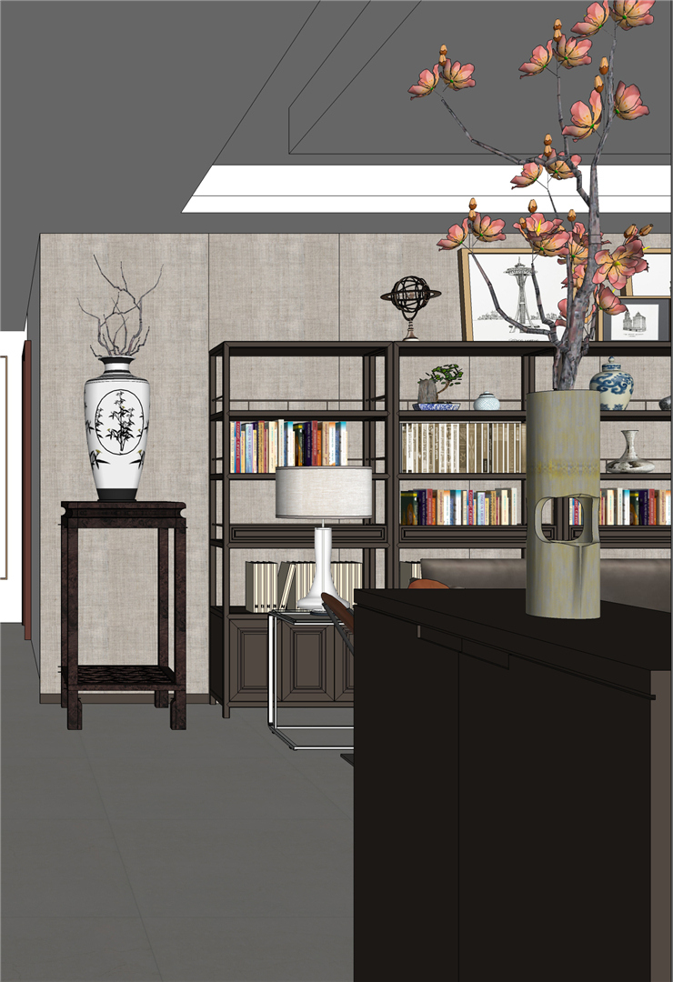 業(yè)主邵律師偏愛(ài)有歲月沉淀的東西,近兩年更是迷上了民國風(fēng)。因此,設計師將民國范兒作為整個(gè)空間的基調,運用中西混搭、復古懷舊的元素,通過(guò)中式的家具、西方的壁爐等造型,追憶民國味道,凸顯文人氣質(zhì)。