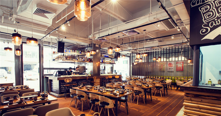 900°燒烤工場(chǎng)位于前山金嘉創(chuàng )意谷內,創(chuàng )意谷前身是一家工廠(chǎng)。將廠(chǎng)房改造成為餐廳,從硬裝到軟裝,傳家僅僅花了27天時(shí)間,完成了500平方米餐廳裝修。