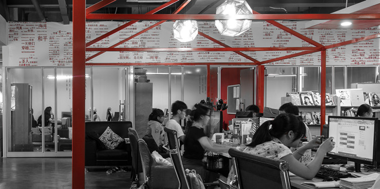 一般辦公室無(wú)非是黑白灰,這三種色調突出的是凝重和認真,缺乏活潑和生氣。新知的辦公室色彩繽紛,凸顯出時(shí)尚媒體的一貫風(fēng)格。北島的“橘子熟了”,細膩的文字和充沛的感情,更是新知人渴望融洽、和睦、真誠的內心寫(xiě)照。