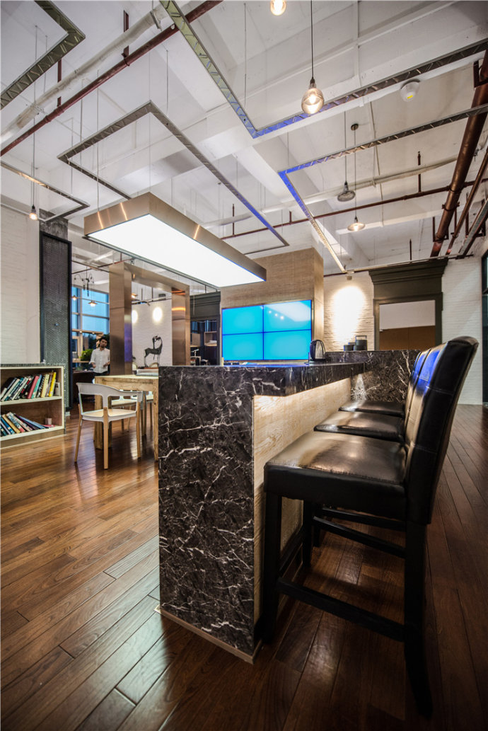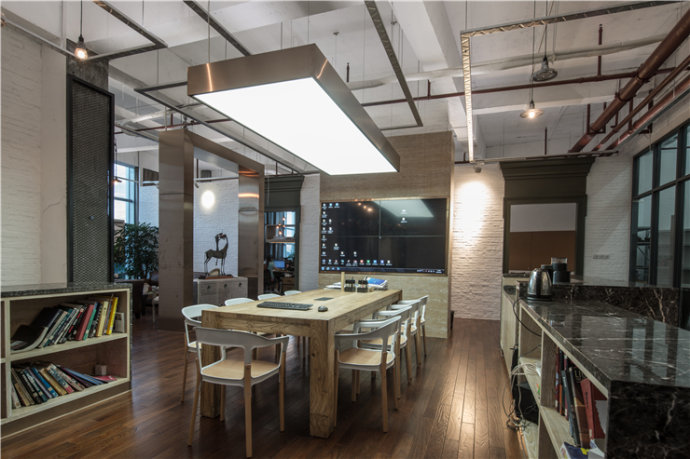 傳家裝飾打造的一系列非正式功能區,為空間印象的設計師提供了一個(gè)有間隔但不隔離的空間。辦公室中域是交流平臺,大長(cháng)桌和液晶顯示屏滿(mǎn)足了空間印象設計師開(kāi)會(huì )討論、研究繪圖等溝通交流的工作需要。當然,喝杯咖啡看本書(shū)也不是問(wèn)題——傳家裝飾打造的辦公室首先富有人情味、讓人呆得住。