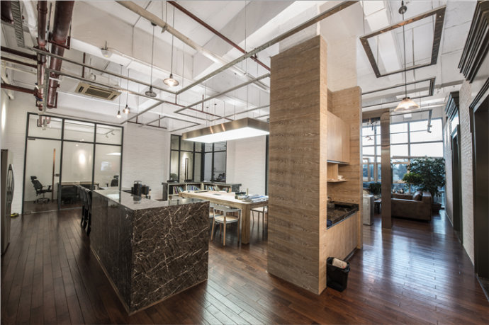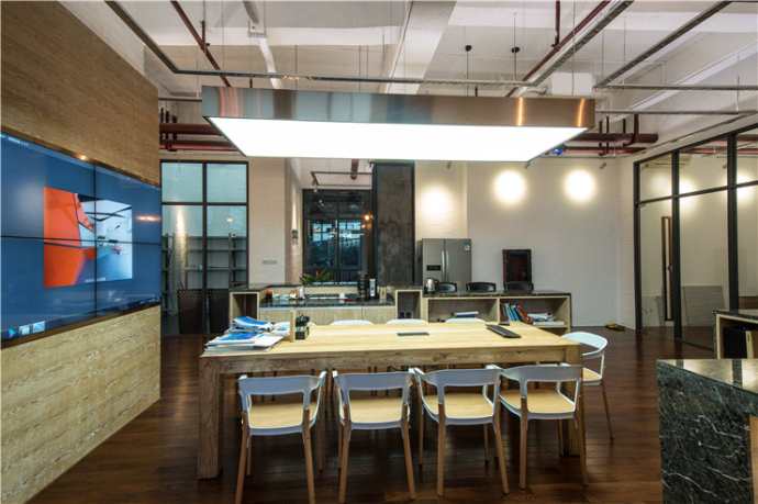 同樣由空間印象設計、傳家裝飾施工的這間辦公室與空間印象以往辦公室一脈相承:吊柜和老空間印象辦公室呼應,滿(mǎn)足設計師交流的公共區域依然遍布整個(gè)辦公室。