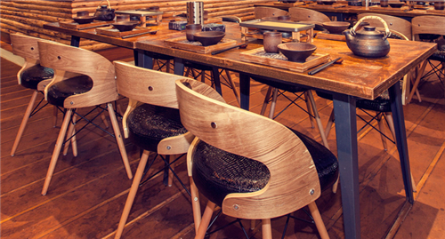 餐桌制作體現了傳家的采購和工廠(chǎng)定制能力,這在餐飲空間裝修中非常重要。