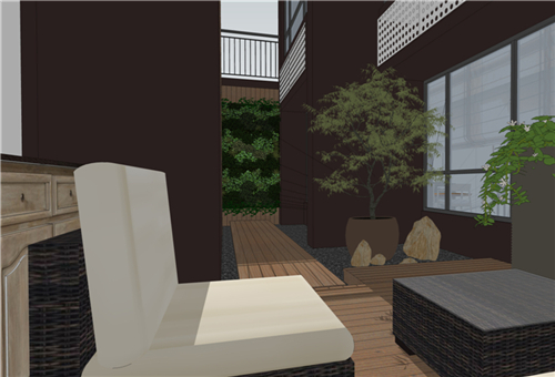 入戶(hù)是一個(gè)狹長(cháng)的庭院,為了充分利用空間,設計師劃分了幾個(gè)功能分區,即洗衣區、過(guò)道、花園區、會(huì )客區,并用爬藤、竹子等綠植來(lái)點(diǎn)綴空間,營(yíng)造自然、愜意的居住氛圍。