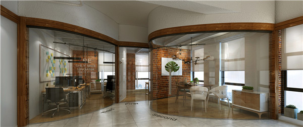一進(jìn)門(mén)便是休閑區,草地的綠、樹(shù)木的褐、石頭的灰,大自然的色彩被揉入這個(gè)空間,每天踏進(jìn)辦公室迎面撲來(lái)的是舒心而不是緊迫。實(shí)木打造的圓弧形墻柜集合了陳列、收納、隔斷三個(gè)功能的同時(shí),讓空間不顯局促,自然光充分照射進(jìn)來(lái)。墻柜的一部分用于存放紅酒,吧臺、鐵藝家具、仿水泥地面又讓這里變成略帶工業(yè)感的小酒吧,在值得慶祝的日子里大家可以一起小酌一杯,平日里也可在此享受都市中的片刻悠閑。