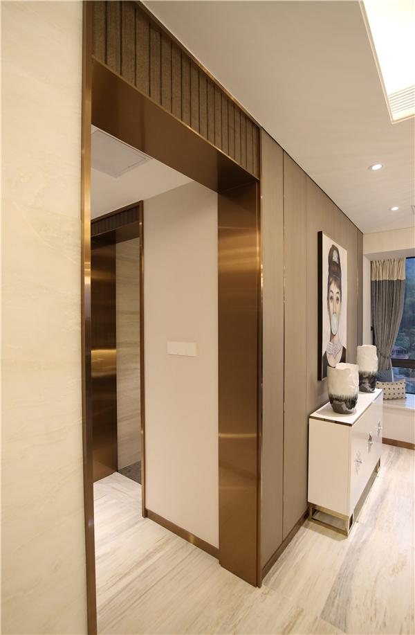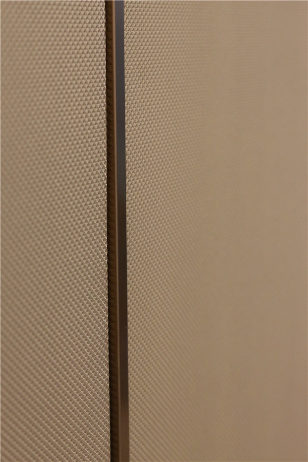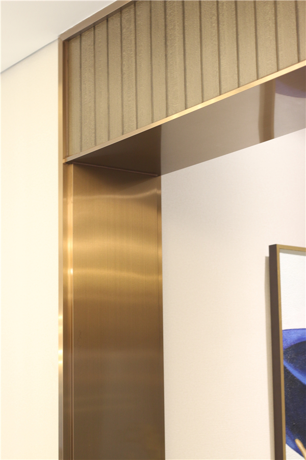 金屬門(mén)框一體成型,每一個(gè)轉角都呈90度,筆直利落,棱角分明。同樣的設計,很多時(shí)候會(huì )出現轉角垂直度不夠呈圓弧狀,這在視覺(jué)上就會(huì )造成挺拔感不足。