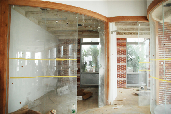 噔噔噔,終于看到方案中讓小傳翹首企足的圓弧玻璃墻辦公室。果然沒(méi)有失望,圖紙上的精彩都100%落在了現實(shí)中。