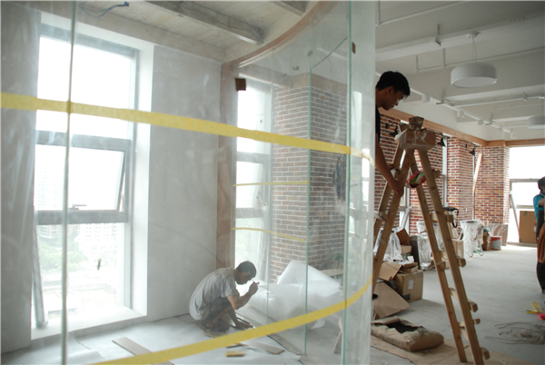 會(huì )議室的玻璃推拉門(mén)看似簡(jiǎn)單,實(shí)則考究,木框與玻璃門(mén)的尺寸把控、軌道與玻璃門(mén)的契合度及潤滑度,既不能松垮推拉時(shí)又不能緊澀費力,安全、實(shí)用、美觀(guān)缺一不可。