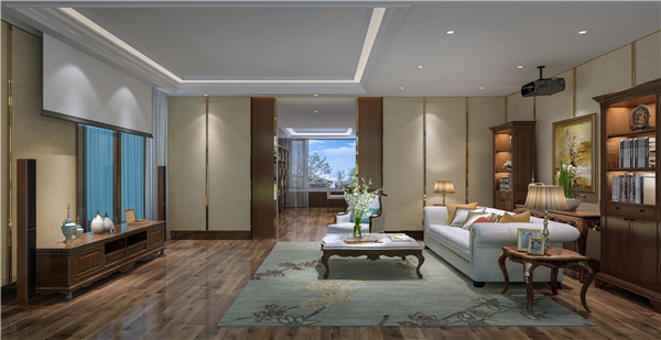 起居室是放松的空間,在房子整體風(fēng)格調性下這里多的是一份愜意與溫馨,所以與客廳餐廳的大理石地面不同,這里采用的是木地板。