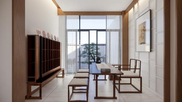 通透的玻璃門(mén)將室外的光線(xiàn)和景致很好地引入。入座品茶,門(mén)外青松映入眼眸,足以讓人凝神靜氣,得到片刻治愈。