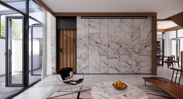空間格局立體通透。細節上多種元素組合,木與大理石材質(zhì)交織,整體以灰白色調為主,搭配橙棕等單品設計,表達出空間的豐富性。