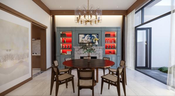 中式庭院的設計,山水盆景的園林光景,契合屋主清雅脫俗的精神追求。