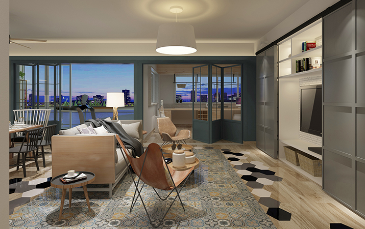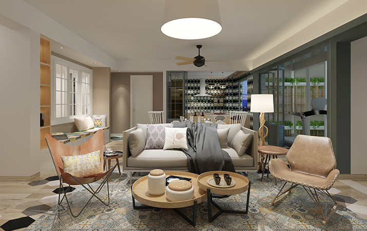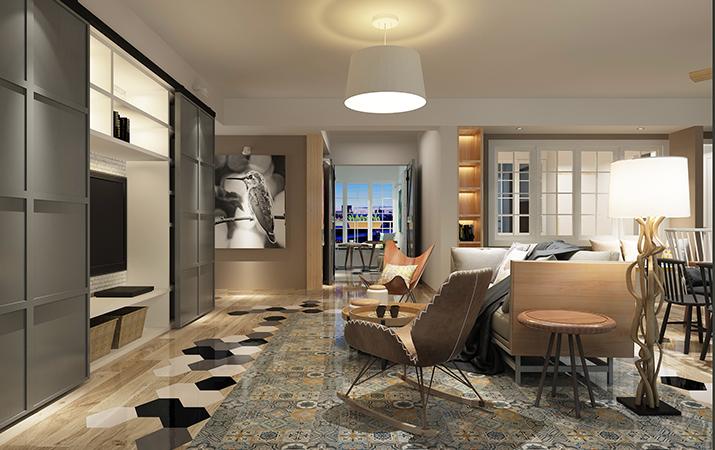 主要材質(zhì):復古花磚、木地板、木飾面、瓷磚、乳膠漆