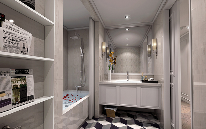 主要材質(zhì):大理石、瓷磚、木工板、白漆等
